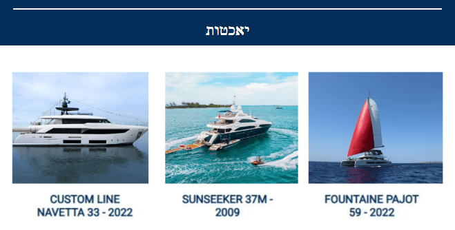 מבחר היאכטות של כל מותגי העל שלנו – ממגה יאכטות מפוארות ועד סירות ספורט מרגשות. יאכטות יד שנייה בבלעדיות – מציאות שלא תרצו לפספס. השכרת יאכטות יוקרתיות לחופשה חלומית על המים. חדשות ואירועים חמים מעולם השיט בארץ ובעולם.