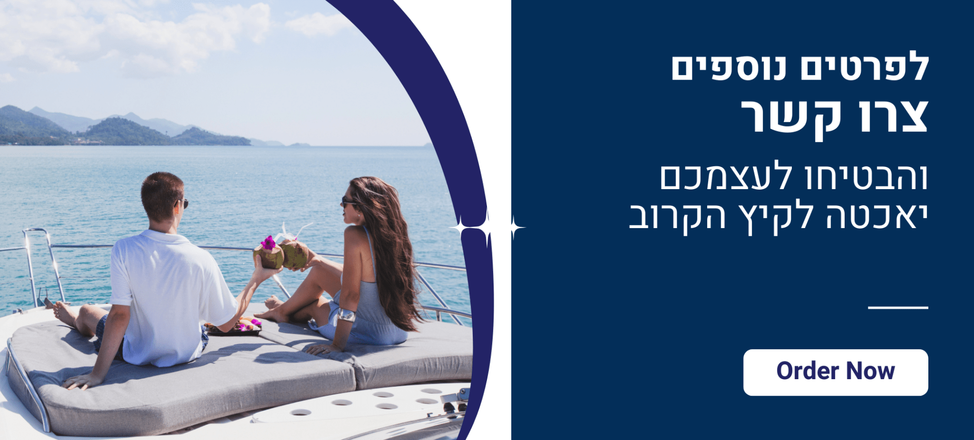 האביב כבר מביא איתו ימים שטופי שמש והקיץ בפתח, זה הזמן להתחיל ולתכנן את חופשת הקיץ שלכם. מה אנחנו מציעים לכם? חופשה פרטית על יאכטה, חוויה אחרת מכל מה שהכרתם. חופשה שבה אתם מתמקדים אך ורק בהנאה, רוגע ופינוק ואנחנו כבר נדאג לכל השאר. היאכטות מגיעות עם צוות ושירות מלא.