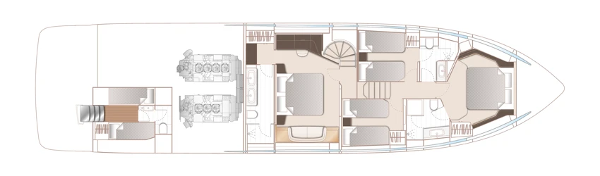 ניתנת לזיהוי מיידי, ה-S74 נושאת את הנוכחות העוצמתית המאפיינת את הסדרה, עם חלונות גוף לכל אורכה ועיצוב חיצוני מעודכן שמדגיש את אופייה הספורטיבי. כל קו משדר התרגשות ודינמיות, תוך שמירה על אלגנטיות על-זמנית שהיא ללא ספק חתימה מובהקת של Princess. מתוכננת לביצועים ומצוידת בזוג מנועי MAN V12, ה-S74 מגיעה למהירויות של עד 38 קשר.
