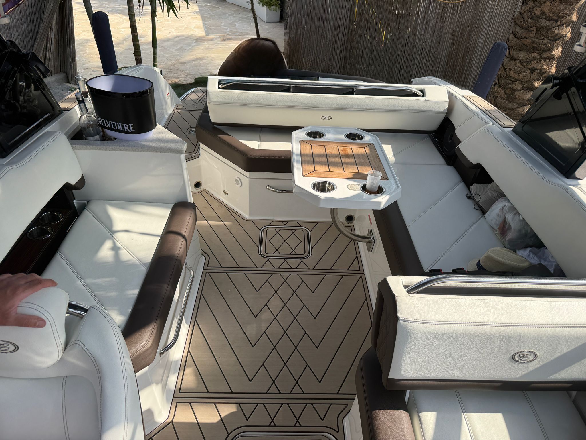 • קישוטים דמוי עץ בתוך דפנות הסירה