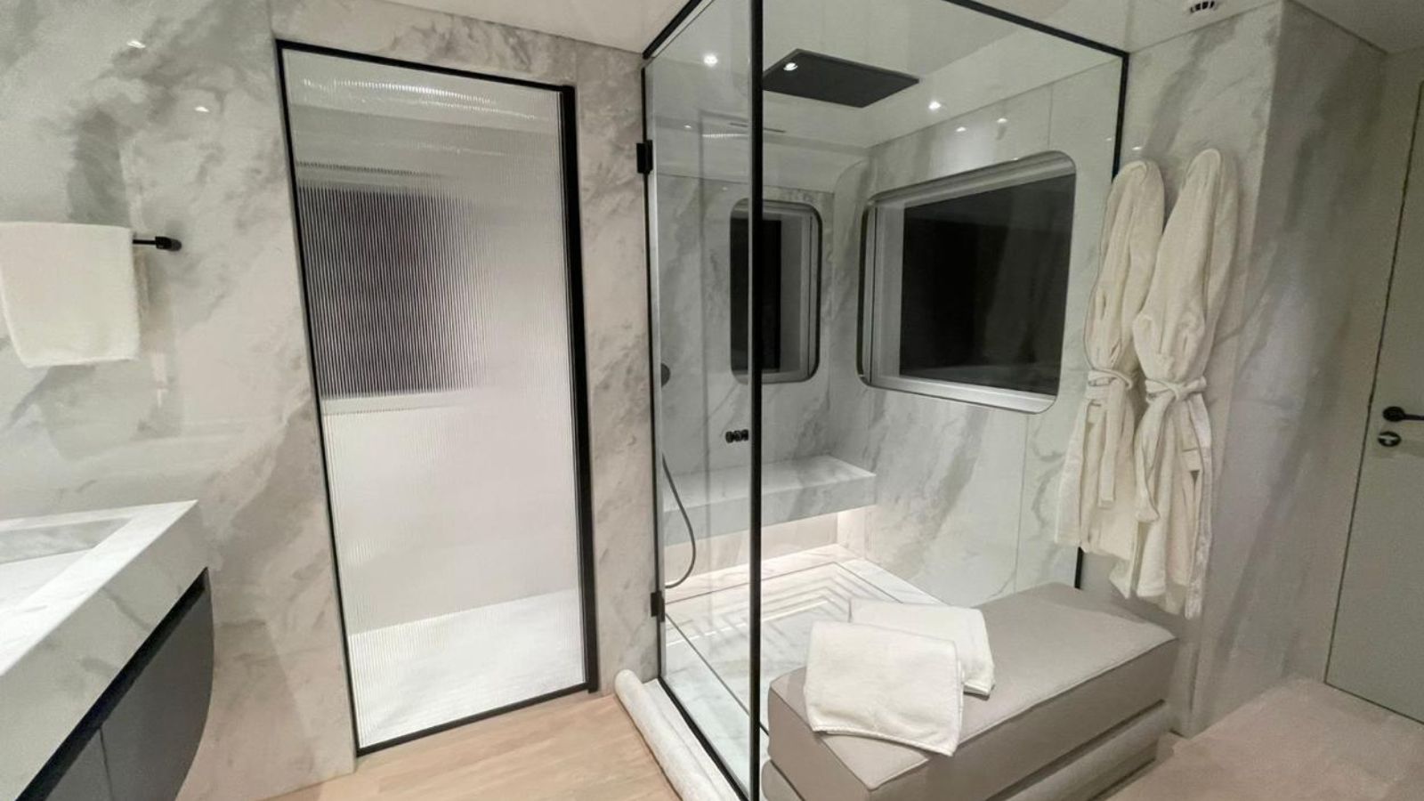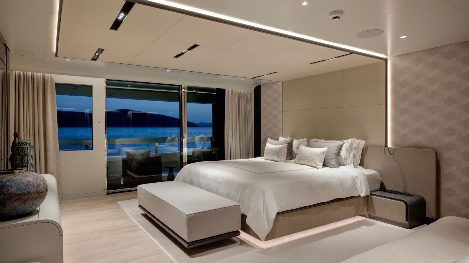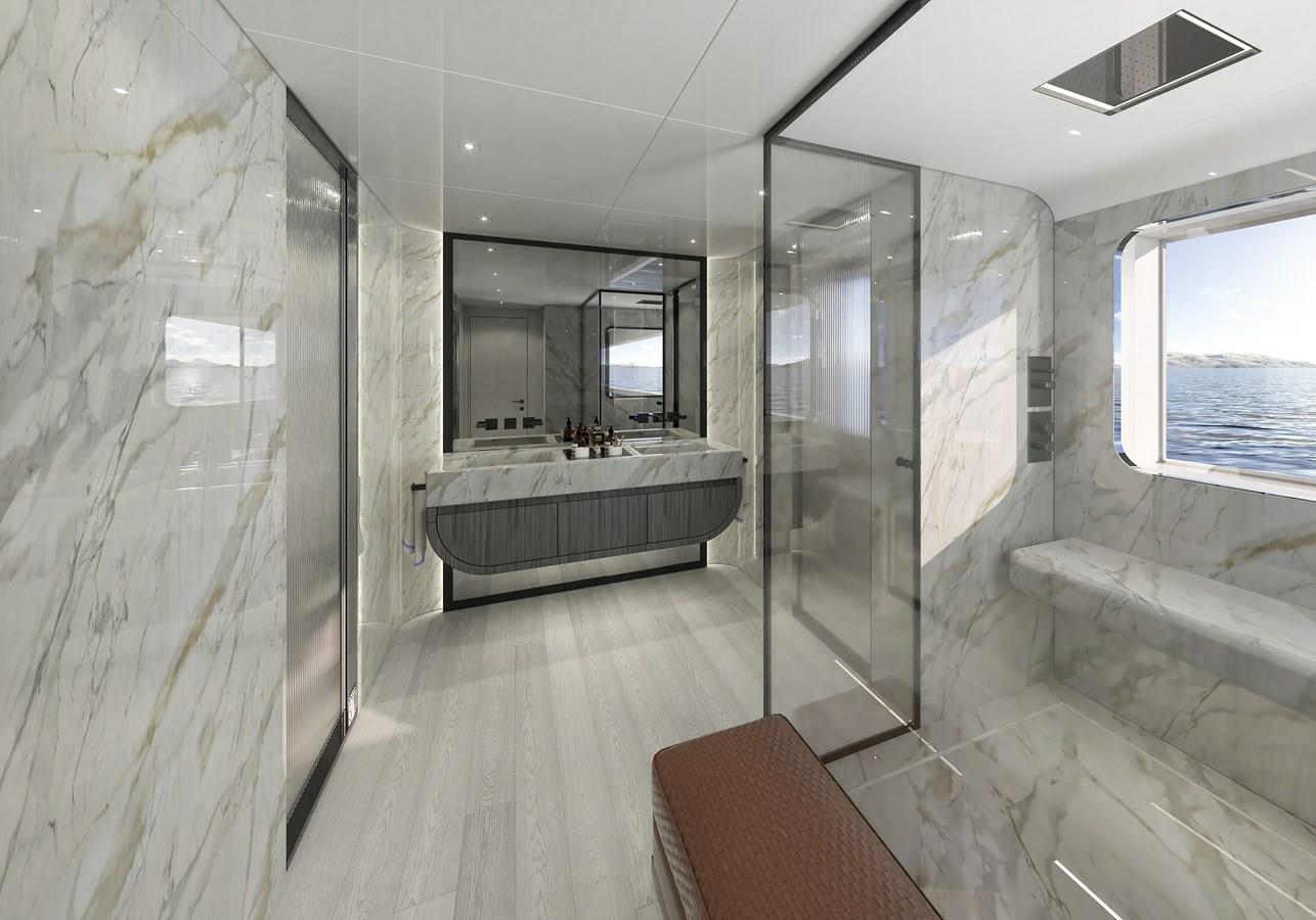 With 500 GT of interior volume, LEGASEA accommodates up to 12 guests in six luxurious suites. The owner’s suite, located on the main deck, with a private balcony, a Jacuzzi, and breathtaking panoramic views. Five well-appointed guest suites on the lower deck ensure an intimate and comfortable voyage for all guests onboard